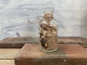 メディスンボトルにはナチュラルな麻紐とリボンをお付けします。テーブルやお気に入りの場所に飾って、落ち着いた色合いをお楽しみください。注文を受けてからお作りします。イメージが変わる場合があります。ご了承ください。